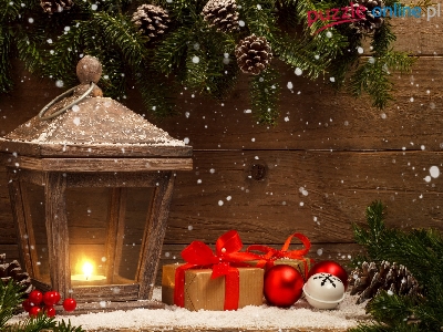 Lampion, Gałązki, Deski, Bombki, Boże Narodzenie, Świeca, Prezenty