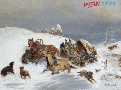 Bogdan Willewalde, Wóz, Psy, Zima, Trojka, Obraz, Konie, Przewrócony