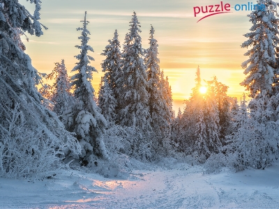 Świerki, Promienie słońca, Zima, Drzewa, Droga