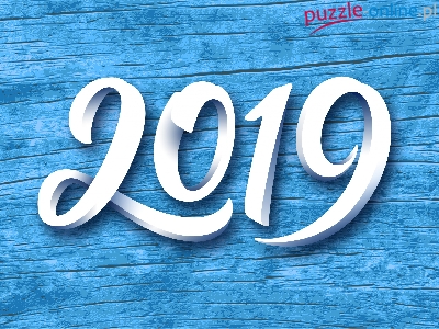 Białe, Niebieskie tło, Nowy Rok, 2019, Cyfry