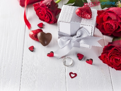 Serduszka, Róże, Walentynki, Prezent, Czekoladki, Pierścionek