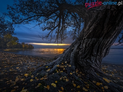 Jezioro, Zmrok, Drzewo, Liście, Brzeg