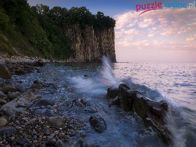 Porośnięte, Brzeg, Skała Kiseleva, Miejscowość Tuapse, Rosja, Kamienie, Morze Czarne, Skały, Kraj Krasnodarski