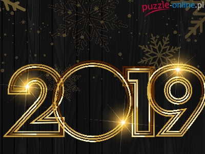 Cyfry, 2019, Deski, Nowy Rok, Złote, Śnieżynki