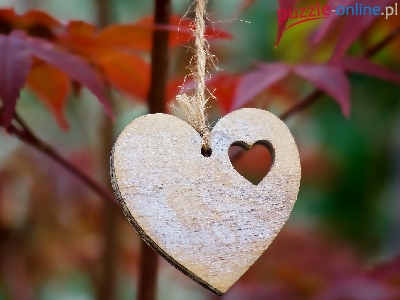 Puzzle Sznurek, Drewniane, Serce, Liście
