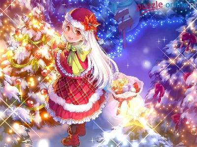 Worek, Choinki, Boże Narodzenie, Dziewczynka, Światełka, Prezenty