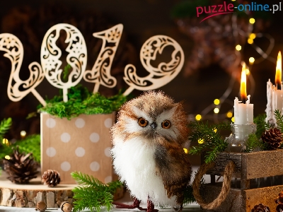 2019, Szyszki, Skrzynka, Świece, Nowy Rok, Sowa, Pudełko