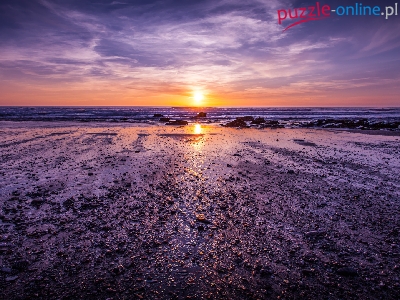 Puzzle Zachód słońca, Plaża, Morze, Kamienie