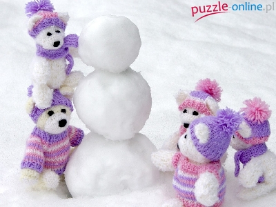 Dzianina, Misie, Bałwan, Zima, Ubranka, Zabawa