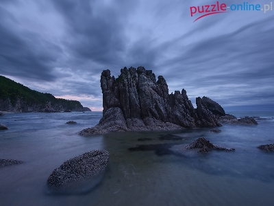 Kamienie, Chmury, Morze, Skały, Wzgórze