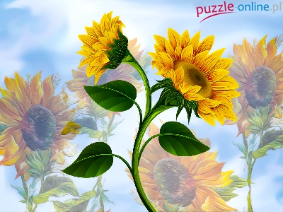 Puzzle 2D, Słoneczniki, Niebieskie tło