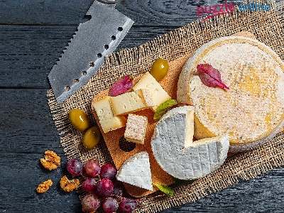 Deska, Winogrona, Serwetka, Sery, Oliwki, Nóż