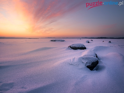 Kamienie, Śnieg, Staw Verkh-Isetsky, Jekaterynburg, Rosja, Zaśnieżony, Zima, Wschód słońca, Obwód swierdłowski