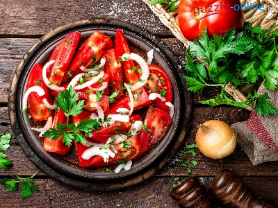 Cebula, Pomidory, Talerz, Pietruszka