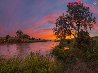Kanał Nevinnomyssk, Rosja, Stawropol, Drzewa, Zachód słońca, Rzeka, Roślinność, Kraj Stawropolski
