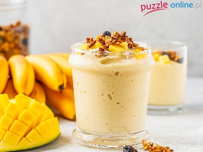 Szklanki, Mango, Orzechy, Smoothie, Dwie, Napój, Banany