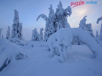 Rezerwat Valtavaara, Śnieg, Finlandia, Zima, Drzewa, Laponia