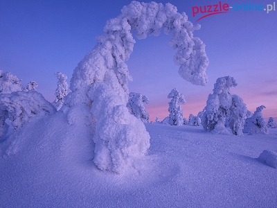 Puzzle Zaśnieżone, Zima, Śnieg, Drzewa