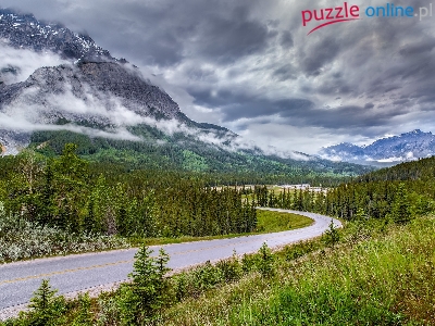 Drzewa, Chmury, Góry, Droga, Lasy
