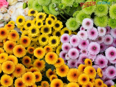 Pomarańczowe, Żółte, Chryzantemy drobnokwiatowe, Kwiaty, Zielone, Różowe