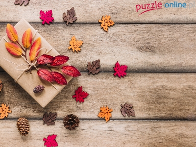 Puzzle Szyszki, Kolorowe, Liście, Prezent