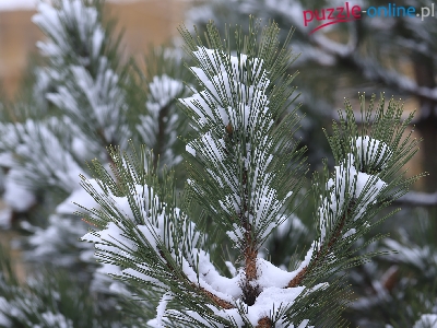 Puzzle Śnieg, Sosna, Gałązki