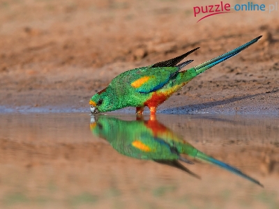 Świergotka wielobarwna, Odbicie, Ptak, Papuga, Woda