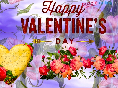 Puzzle Napis, Walentynki, Kwiaty, Serce
