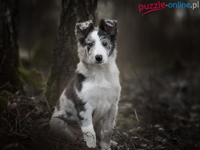 Puzzle Szczeniak, Pies, Border collie, Drzewa