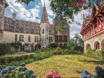 Gmina La Rochepot, Francja, Zamek Rochepot, Dziedziniec, Burgundia