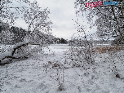 Puzzle Drzewa, Zima, Krzewy, Rzeka