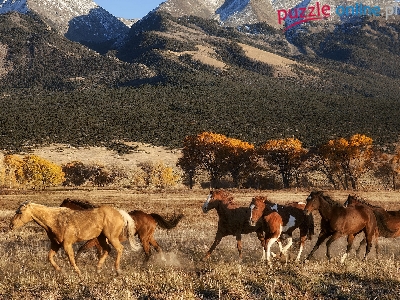 Puzzle Drzewa, Konie, Góry