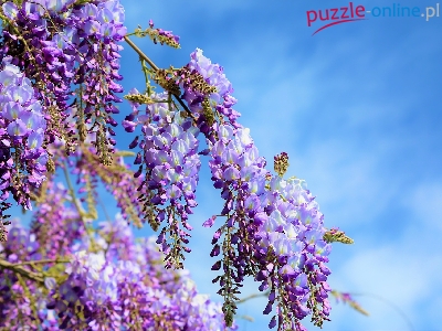 Puzzle Glicynia, Fioletowe, Kwiaty, Niebo