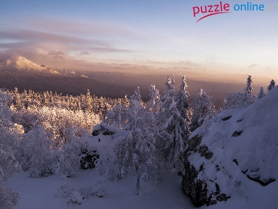 Skały, Park Narodowy Taganaj, Rosja, Zima, Góry, Drzewa, Obwód czelabiński