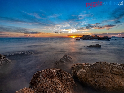 Skały, Hiszpania, Zachód słońca, Morze Śródziemne, Walencja