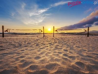 Słońce, Siatki, Plaża, Piasek, Niebo