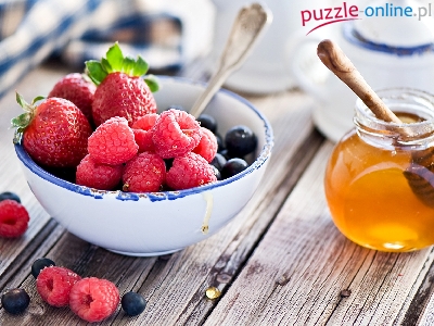 Miód, Truskawki, Słoik, Maliny, Jagody, Miseczka