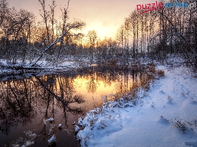 Zima, Odbicie, Rzeka, Åšwit, Drzewa