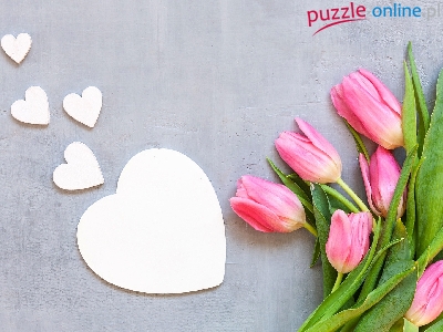 Puzzle Szare, Tulipany, Serca, Tło