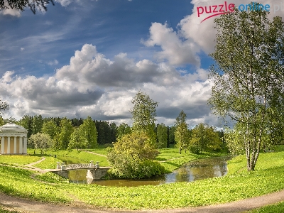 Świątynia Przyjaźni, Rosja, Pawłowsk, Mostek, Drzewa, Park, Rzeka Sławianka, Petersburg