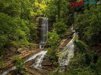 Skały, Rzeka, Drzewa, Las, Wodospad