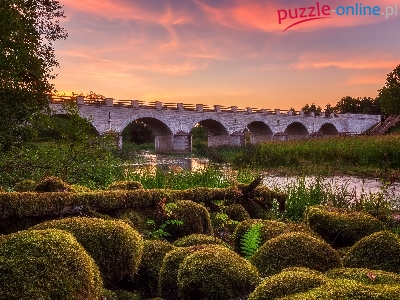 Kamienie, Rzeka, Rośliny, Most, Omszałe, Drzewa