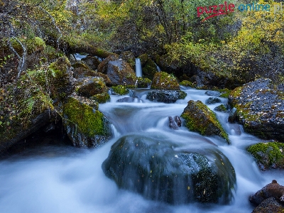 Rzeka, Drzewa, Omszałe, Kamienie, Gałęzie