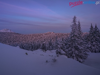 Skały, Góry, Zmierzch, Park Narodowy Taganaj, Rosja, Zima, Wzgórza, Drzewa, Obwód czelabiński