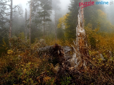 Las, Rośliny, Drzewo, Mgła, Jesień, Drzewa, Powalone