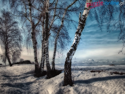 Puzzle Droga, Drzewa, Brzozy, Zima