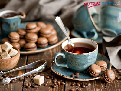 Herbata, Brązowy, Kostki, Makaroniki, Filiżanka, Ciasteczka, Cukier
