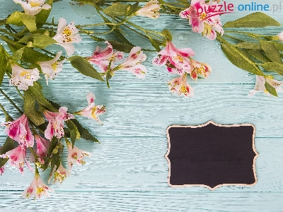 Liście, Deski, Kwiaty, Alstremerie, Tabliczka