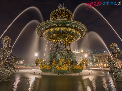 Fontaine des Mers, Francja, Plac Zgody, Rzeźby, Place de la Concorde, Fontanna Mórz, Noc, Paryż