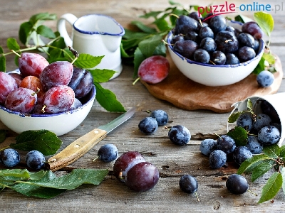 Nóż, Listki, Śliwki, Miseczki, Deski